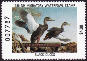 NH7 1989 State Duck Stamp. Mint Never Hinged. Very Fine. Black Ducks by Robert Steiner.
