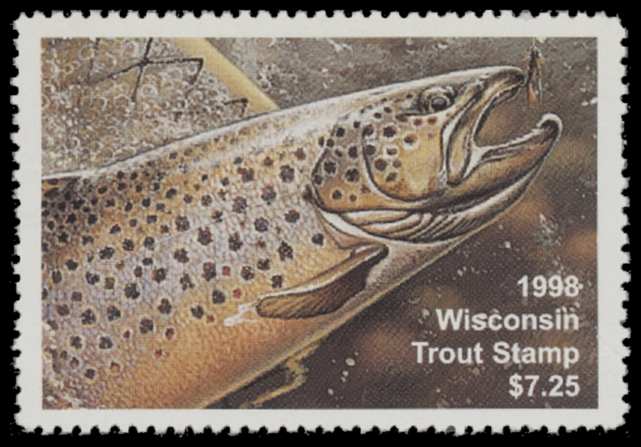 1998 Wisconsin Trout Stamp. Mint Never Hinged. Very Fine.