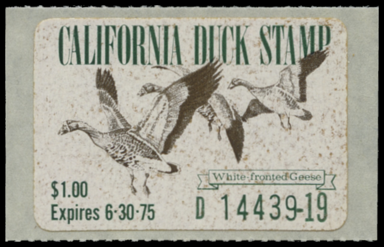 CA4 1974 State Duck Stamp. Mint Never Hinged. Very Fine. White-fronted Geese by Paul B. Johnson.