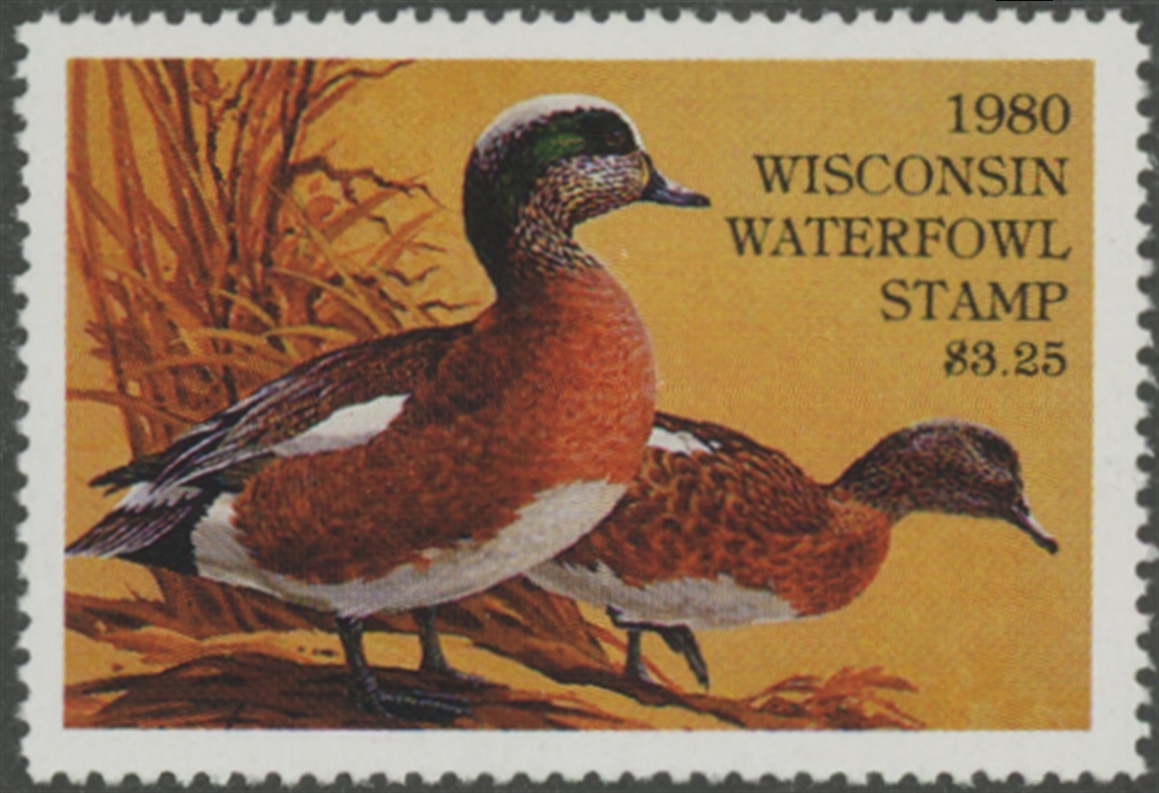 WI3 1980 State Duck Stamp. Mint Never Hinged. Very Fine. Widgeons by Martin R. Murk.