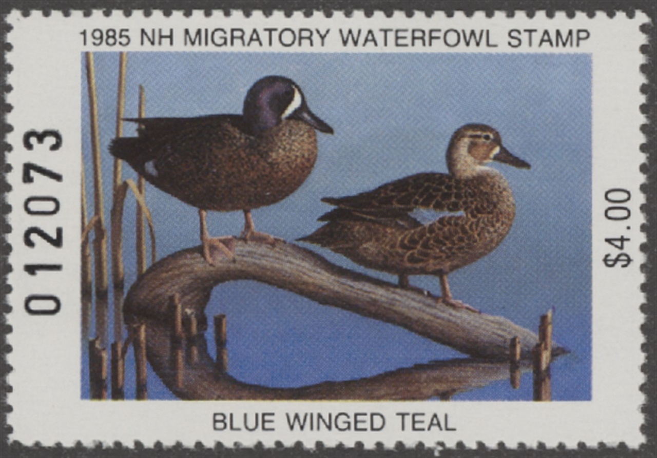 NH3 1985 State Duck Stamp. Mint Never Hinged. Very Fine. Blue-winged Teal by Tom Hirata.