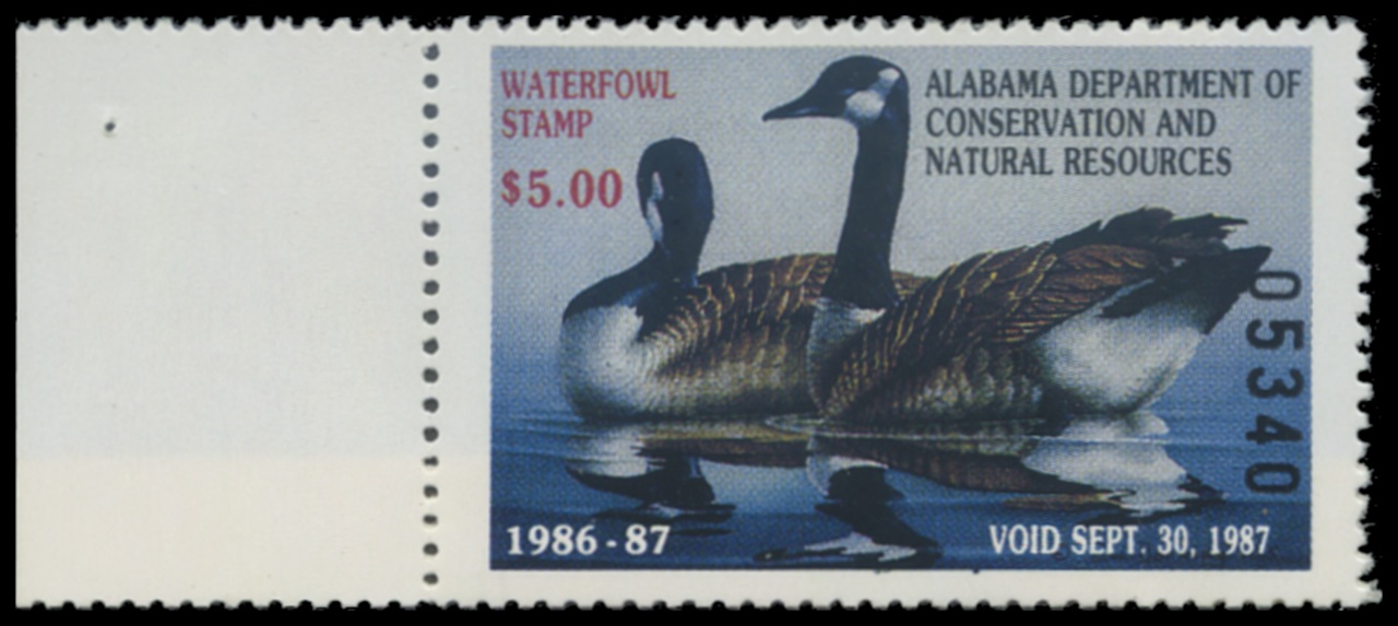 AL8 1986 State Duck Stamp. Mint Never Hinged. Very Fine. Canada Geese by Danny Dorning.