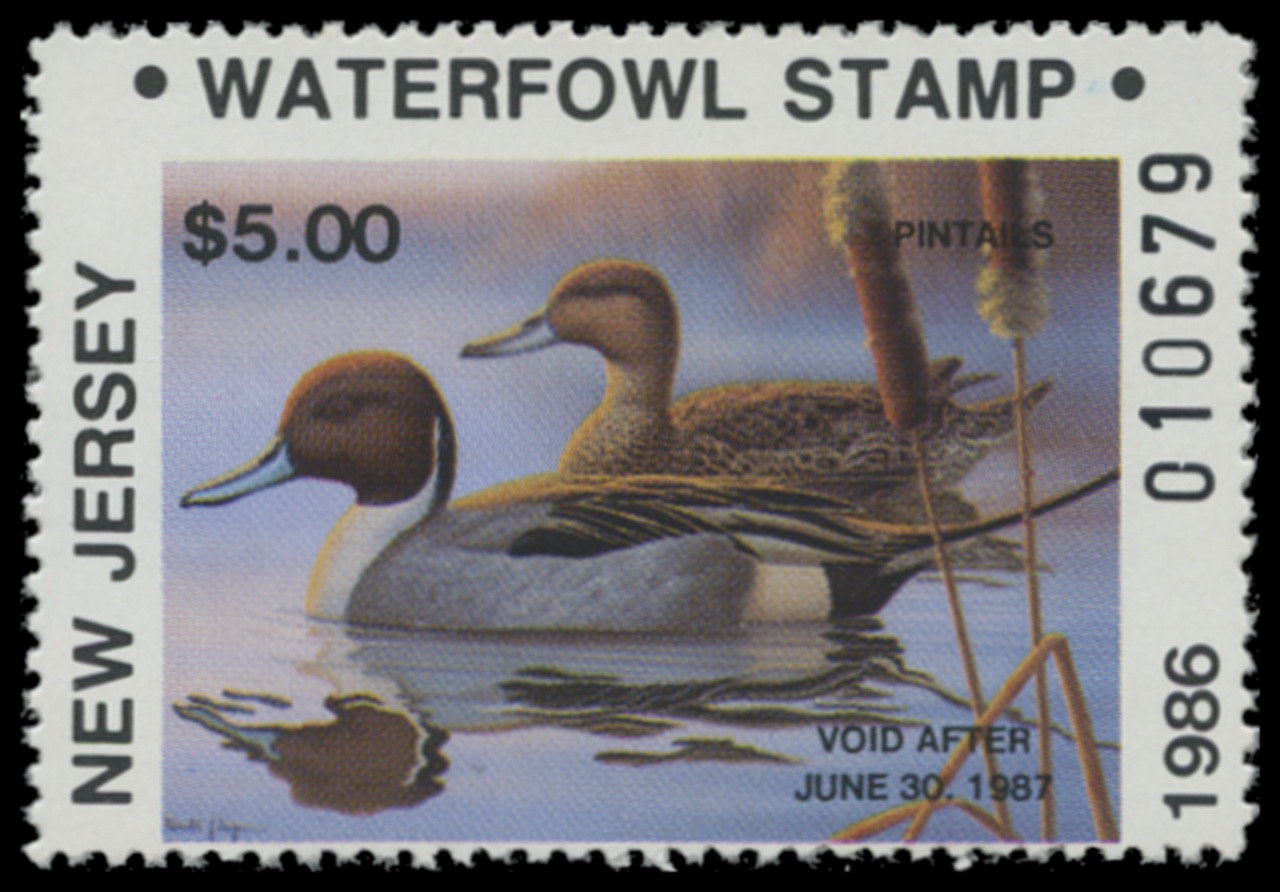 NJ3NR 1986 State Duck Stamp. Mint Never Hinged. Very Fine. Pintails by Ron Louque.