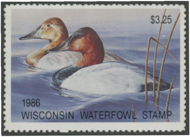 WI9 1986 State Duck Stamp. Mint Never Hinged. Very Fine.