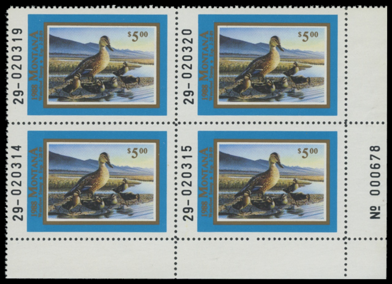 1988 Montana Duck Stamps. Plate Block of 4