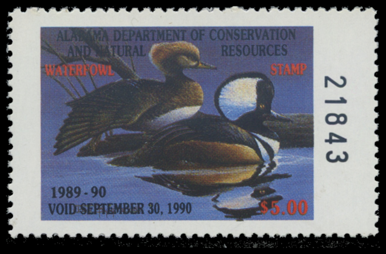 AL11 1989 State Duck Stamp. Mint Never Hinged. Very Fine. Hooded Mergansers by Elaine Byrd.