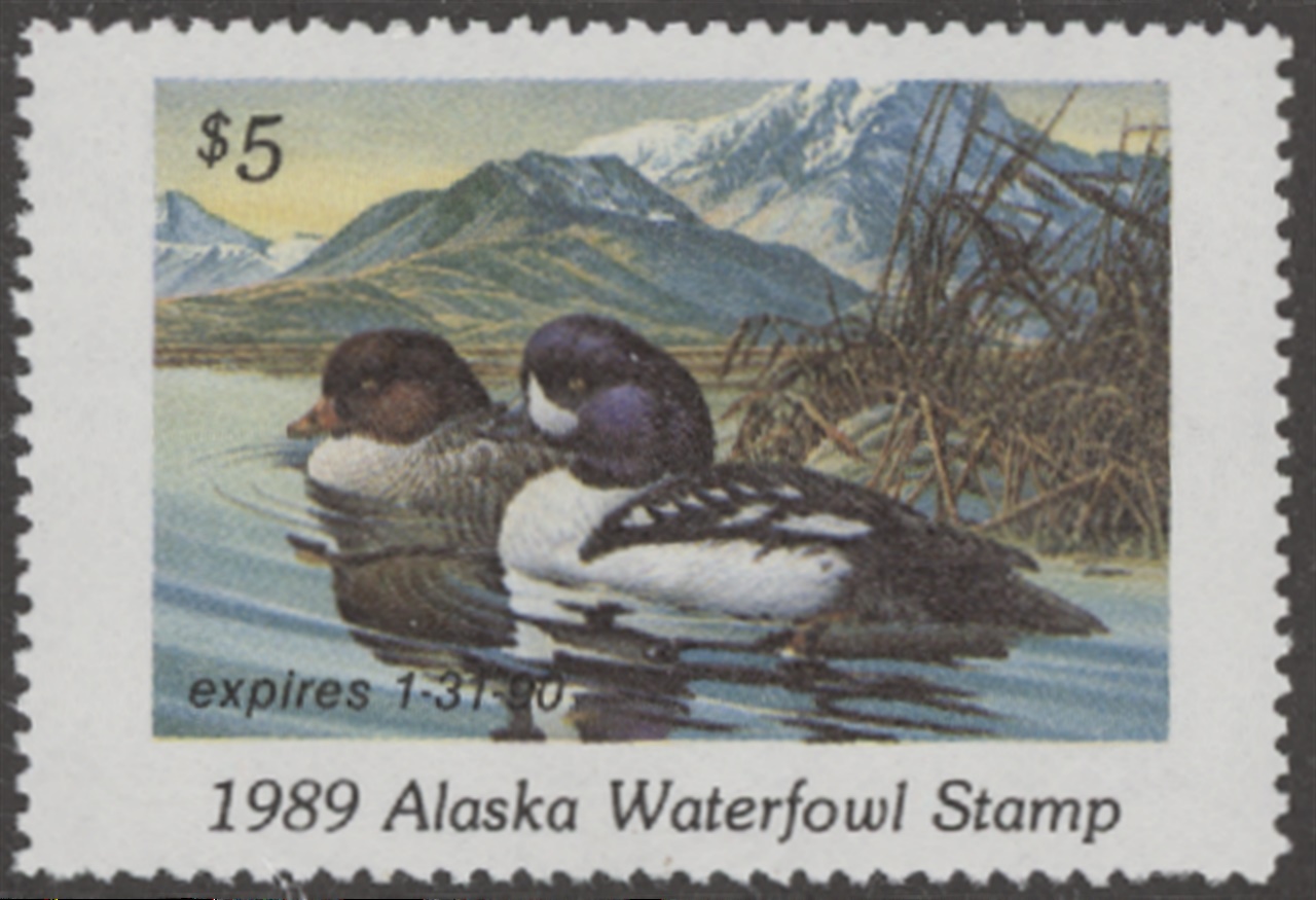AK5 1989 State Duck Stamp. Mint Never Hinged. Very Fine. Barrow's Goldeneye by Richard Timm.