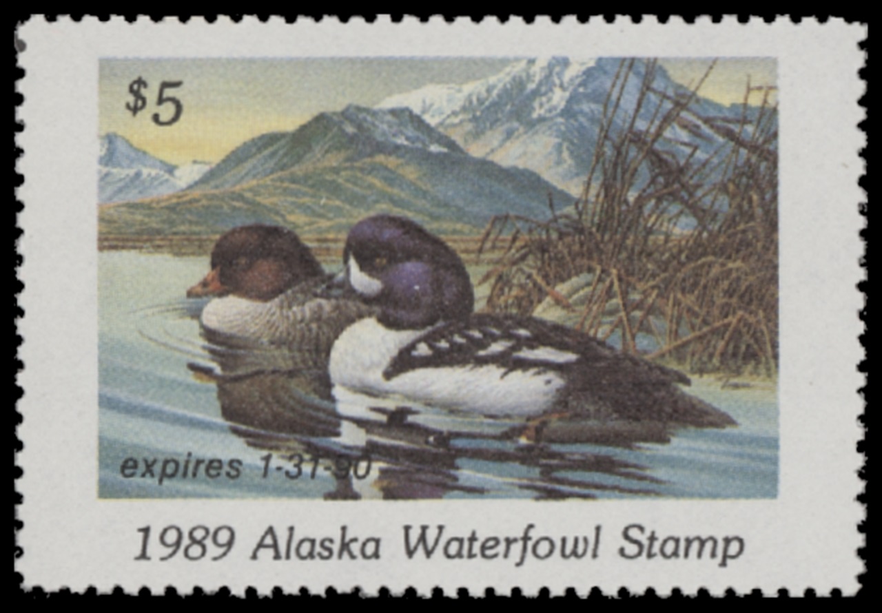 AK5 1989 State Duck Stamp. Mint Never Hinged. Very Fine. Barrow's Goldeneye by Richard Timm.