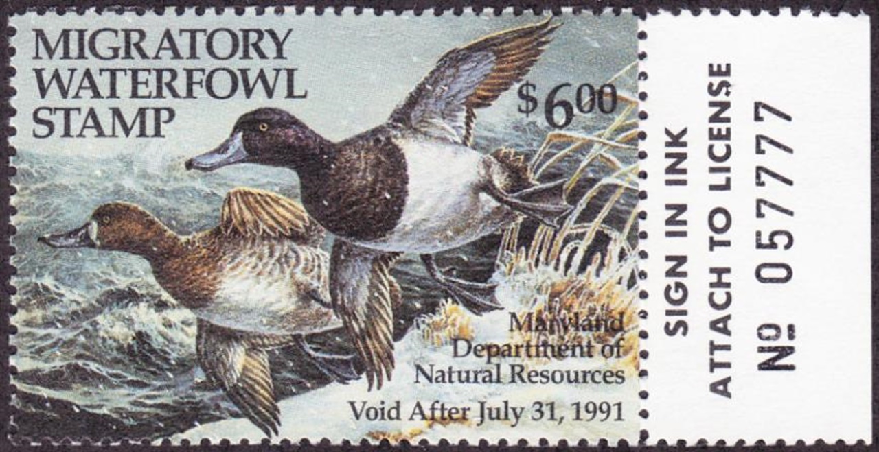 MD17 1990 State Duck Stamp. Mint Never Hinged. Very Fine.