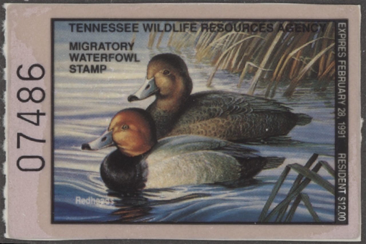 TN12 1990 State Duck Stamp. Mint Never Hinged. Very Fine. Redhead Ducks by Tom Freeman.