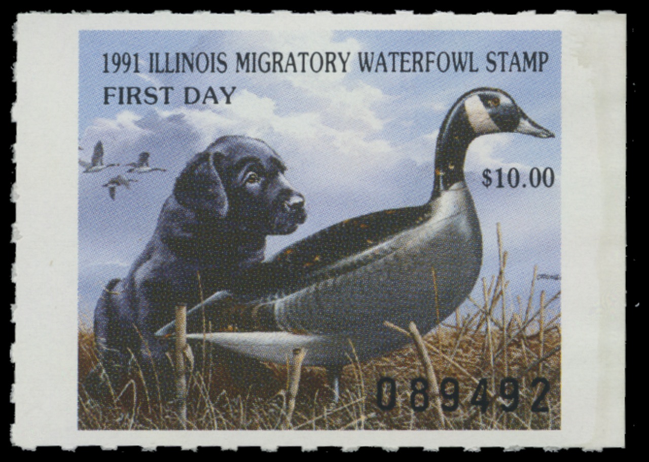 IL17 1991 State Duck Stamp. Mint Never Hinged. Very Fine. "First Day" by Phillip Crowe.
