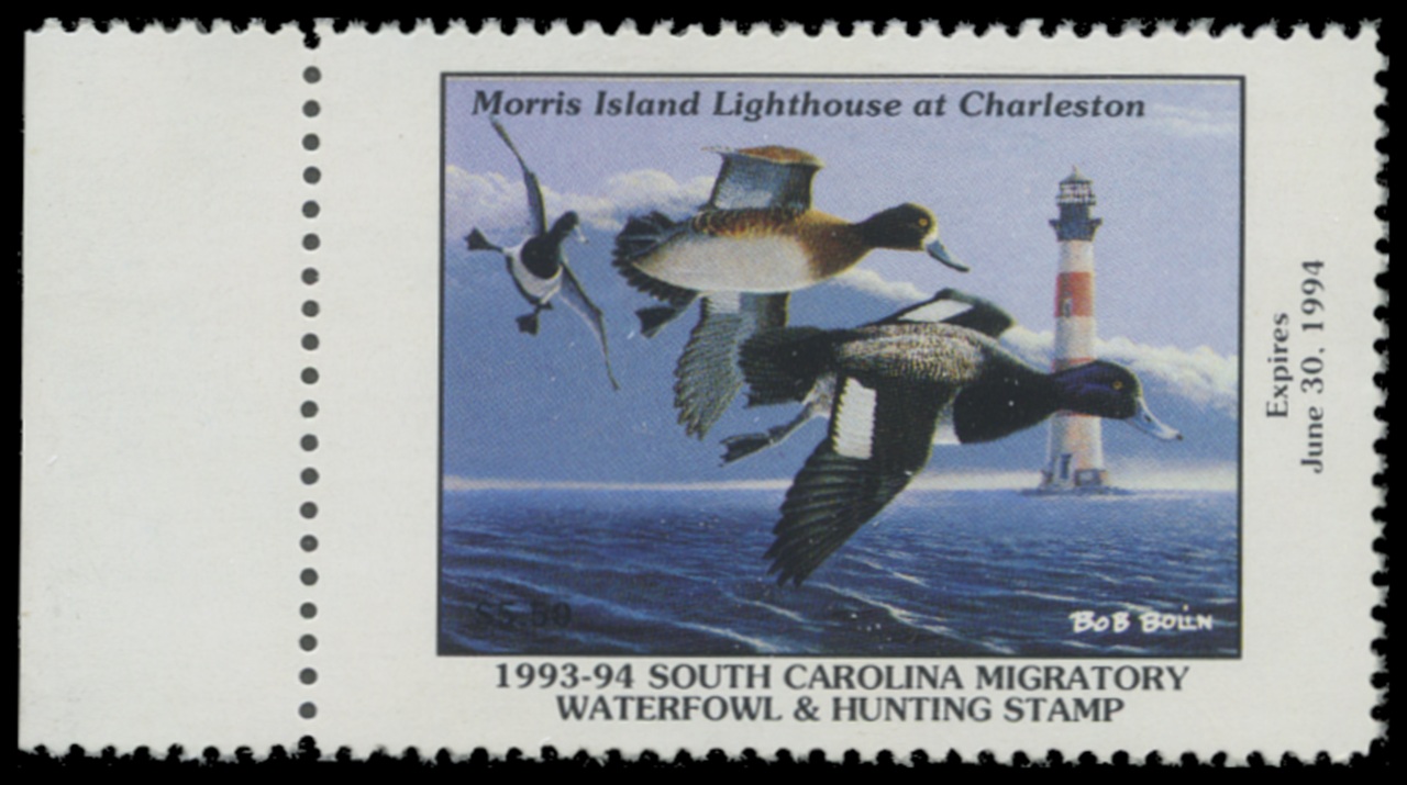 SC13 1993 State Duck Stamp. Mint Never Hinged. Very Fine. Lesser Scaup by Bob Bolin.