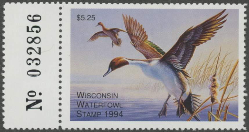 WI17 1994 State Duck Stamp. Mint Never Hinged. Very Fine. Pintails by Don Moore.