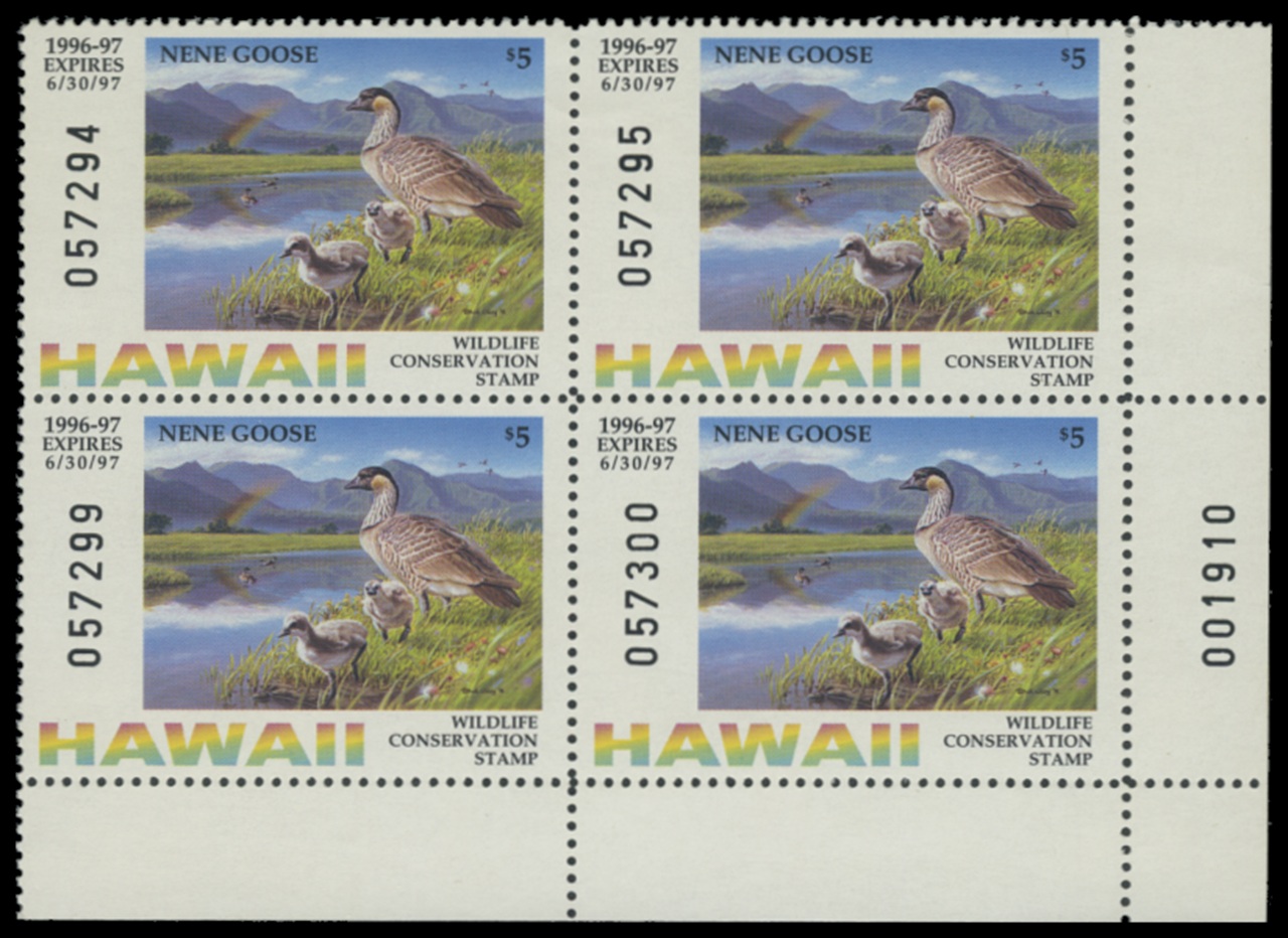 HI1 1996 State Duck Stamps. Mint Never Hinged. Very Fine. Nene Geese by Patrick Ching.