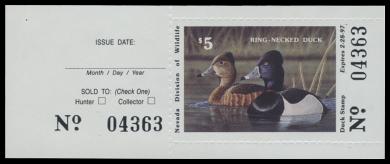 NV18H 1996 State Duck Stamp. Mint Never Hinged. Very Fine. Ring-necked Ducks by Jeffrey Klinefelter.