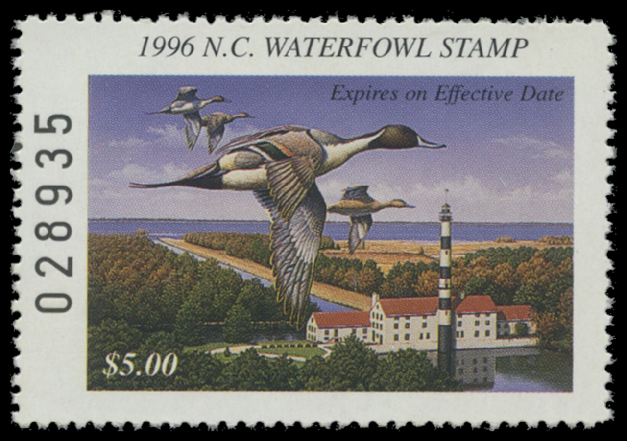 NC14 1996 State Duck Stamp. Mint Never Hinged. Very Fine. Pintails by Rob Leslie.