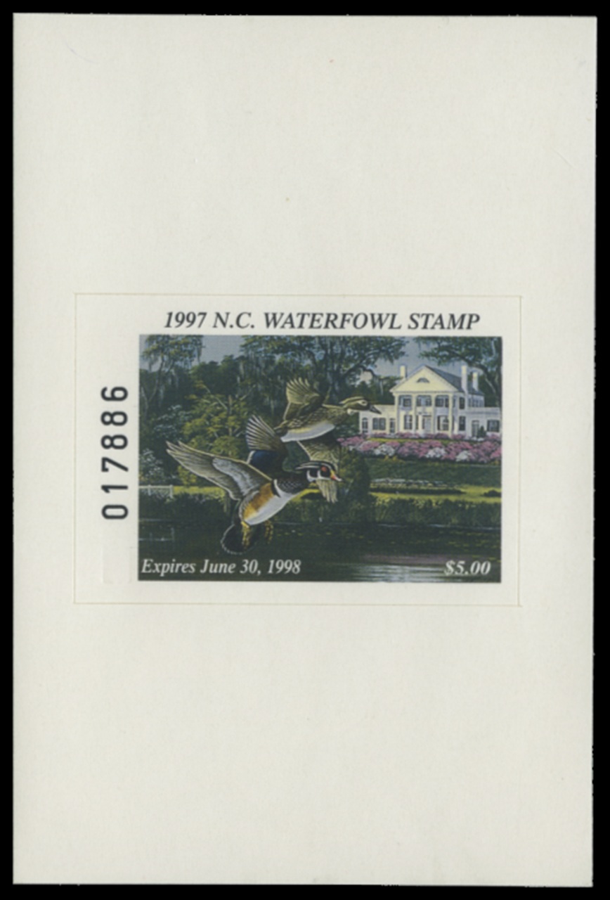 NC15H 1997 State Duck Stamp. Mint Never Hinged. Very Fine. Wood Ducks by Wilhelm Goebel.