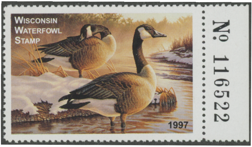 WI20 1997 State Duck Stamp. Mint Never Hinged. Very Fine. Canada Geese by Greg Alexander.