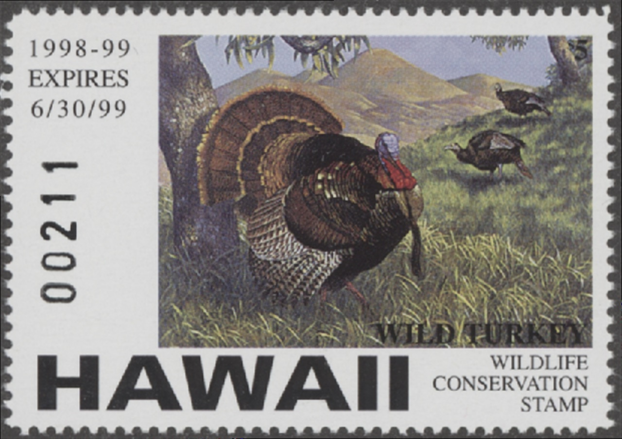 HI3 1998 State Duck Stamp. Mint Never Hinged. Very Fine. Wild Turkey on a Duck Stamp by Michael Furuya.