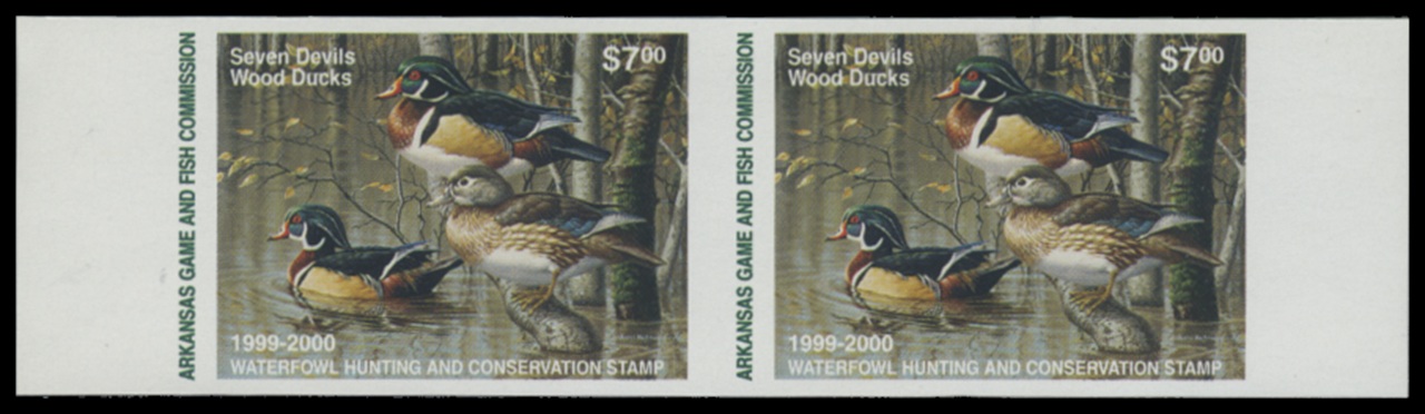 AR19P 1999 State Duck Stamp. Mint Never Hinged. Very Fine. Wood Ducks by Jim Hautman.