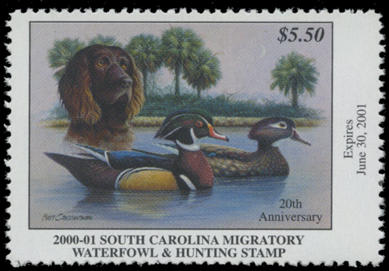 SC20 2000 State Duck Stamp. Mint Never Hinged. Very Fine. Wood Ducks by Matt Constantine.