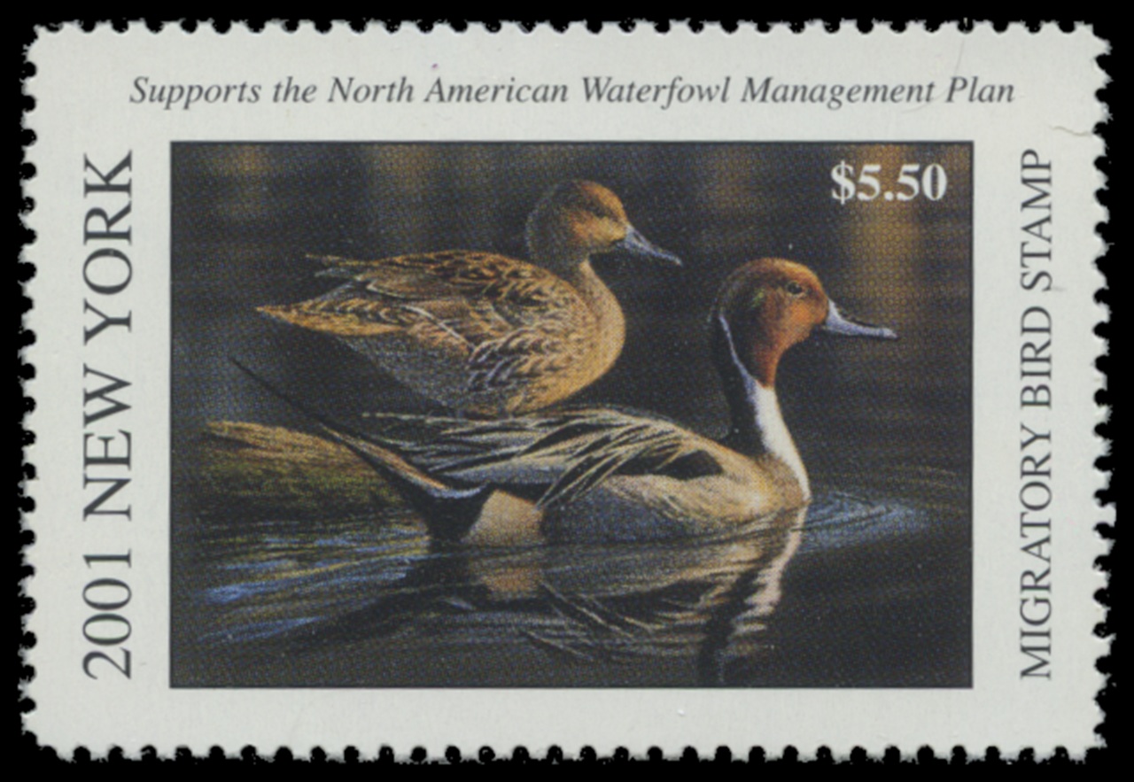 NY17 2001 State Duck Stamp. Mint Never Hinged. Very Fine. Pintails by Bruce Miller.