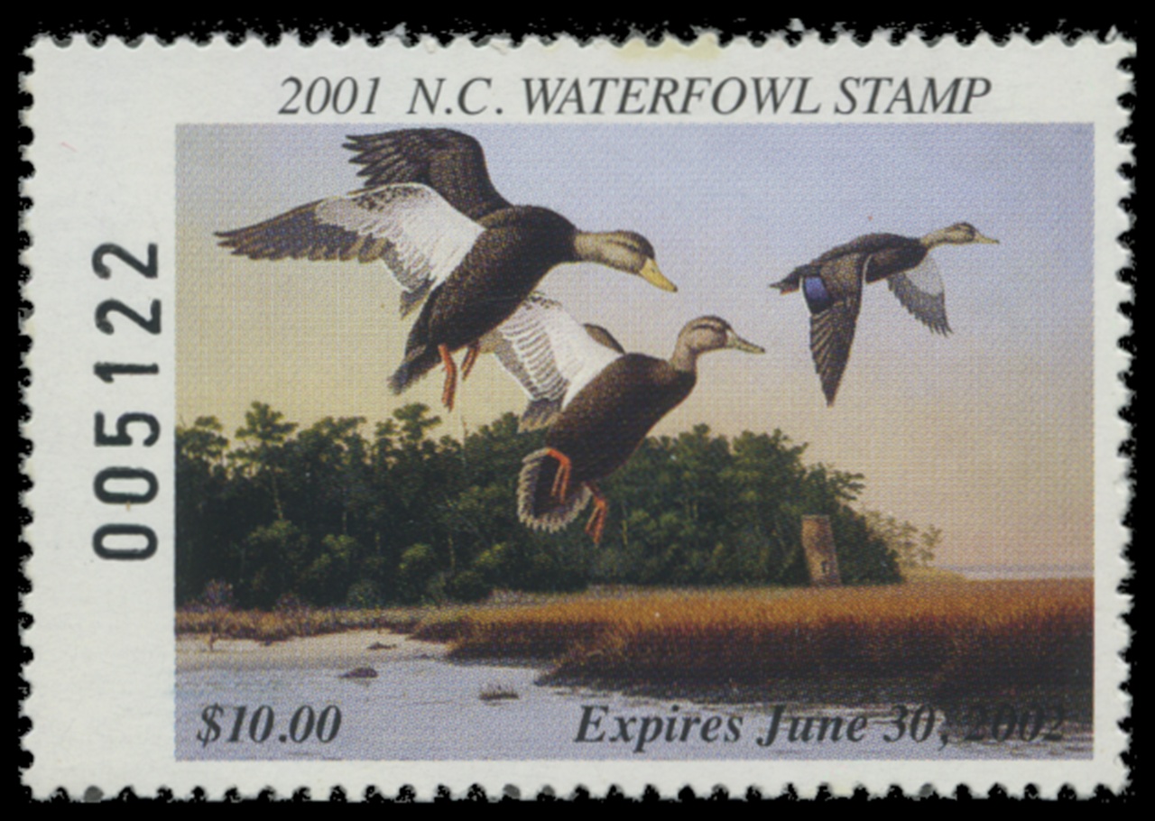 NC19 2001 State Duck Stamp. Mint Never Hinged. Very Fine. Black Ducks by Ronald J. Louque.