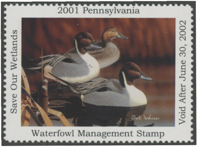 PA19 2001 State Duck Stamp. Mint Never Hinged. Very Fine. Pintails by Clark M. Weaver.