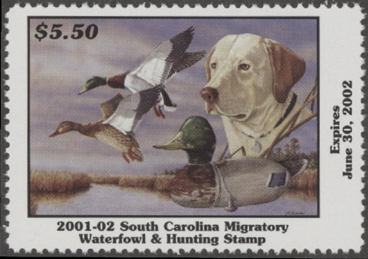 SC21 2001 State Duck Stamp. Mint Never Hinged. Very Fine. Yellow Lab by Jeffrey Klinefelter.