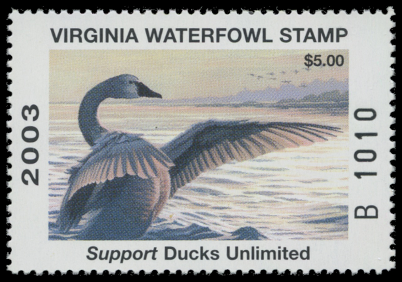 VA16 2003 State Duck Stamp. Mint Never Hinged. Very Fine. Tundra Swan by Jim Wilson.