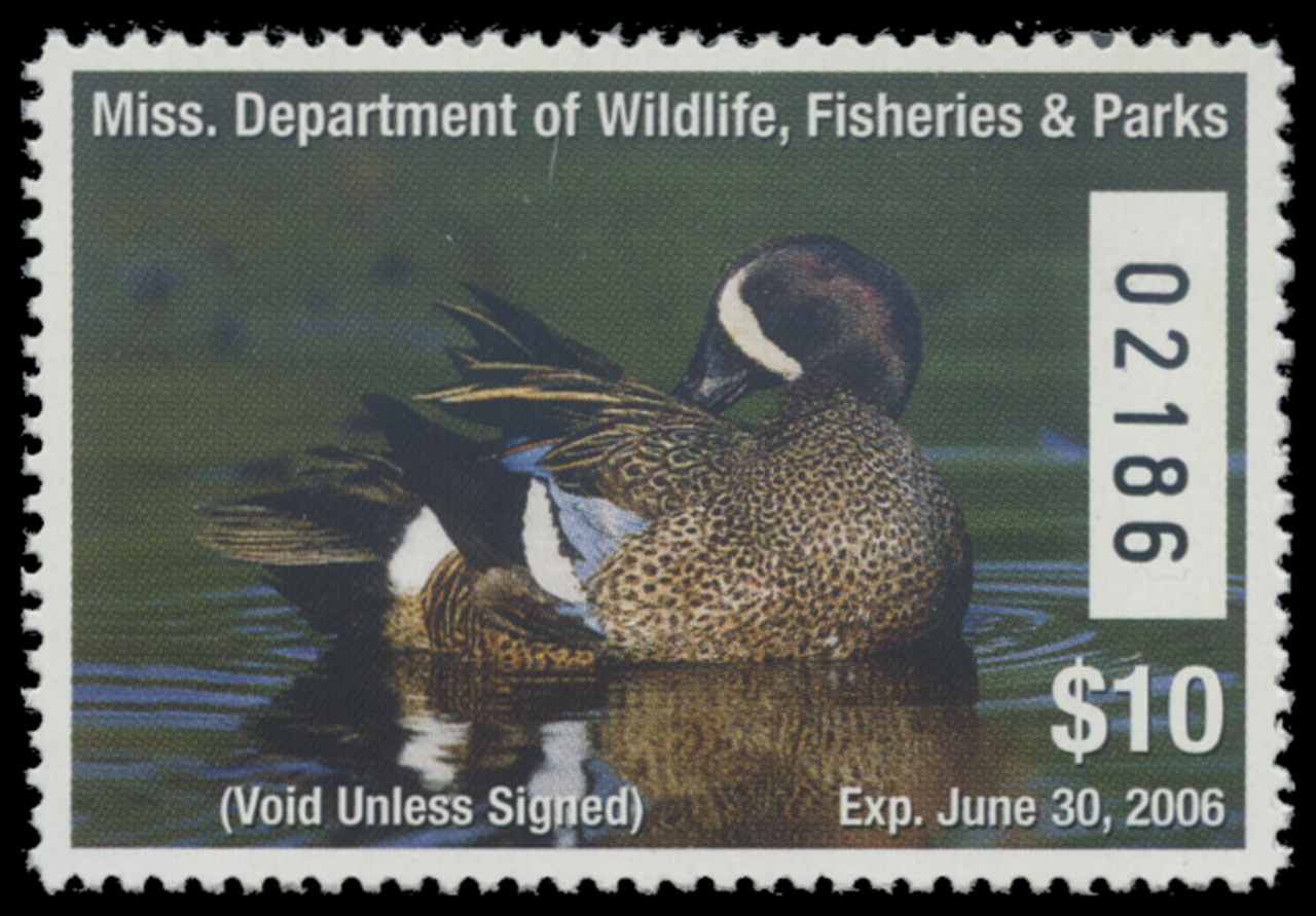 MS30 2005 State Duck Stamp. Mint Never Hinged. Very Fine. Blue-winged Teal by Joe Mac Hudspeth.