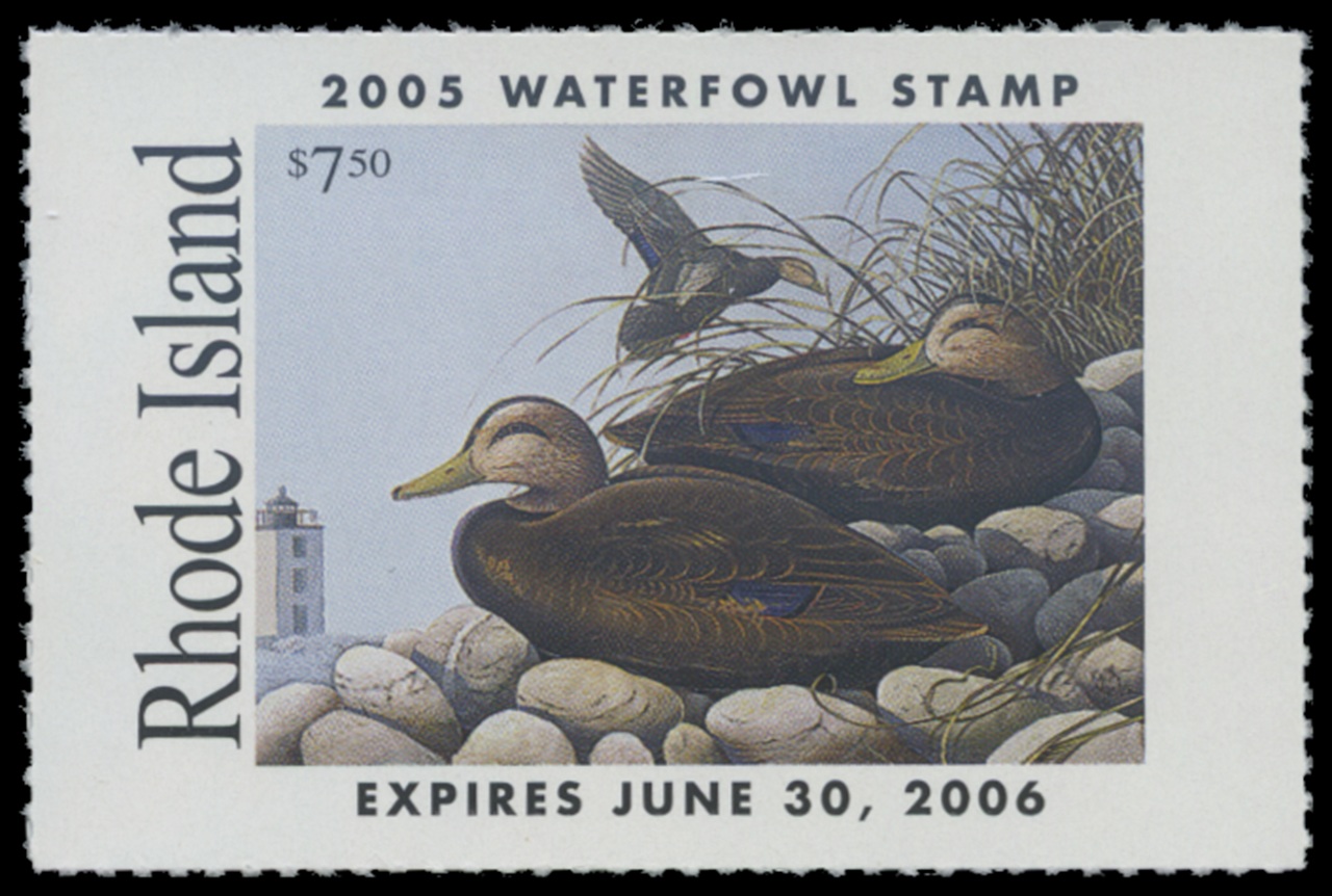 RI17 2005 State Duck Stamp. Mint Never Hinged. Very Fine. Black Ducks by Keith Mueller.