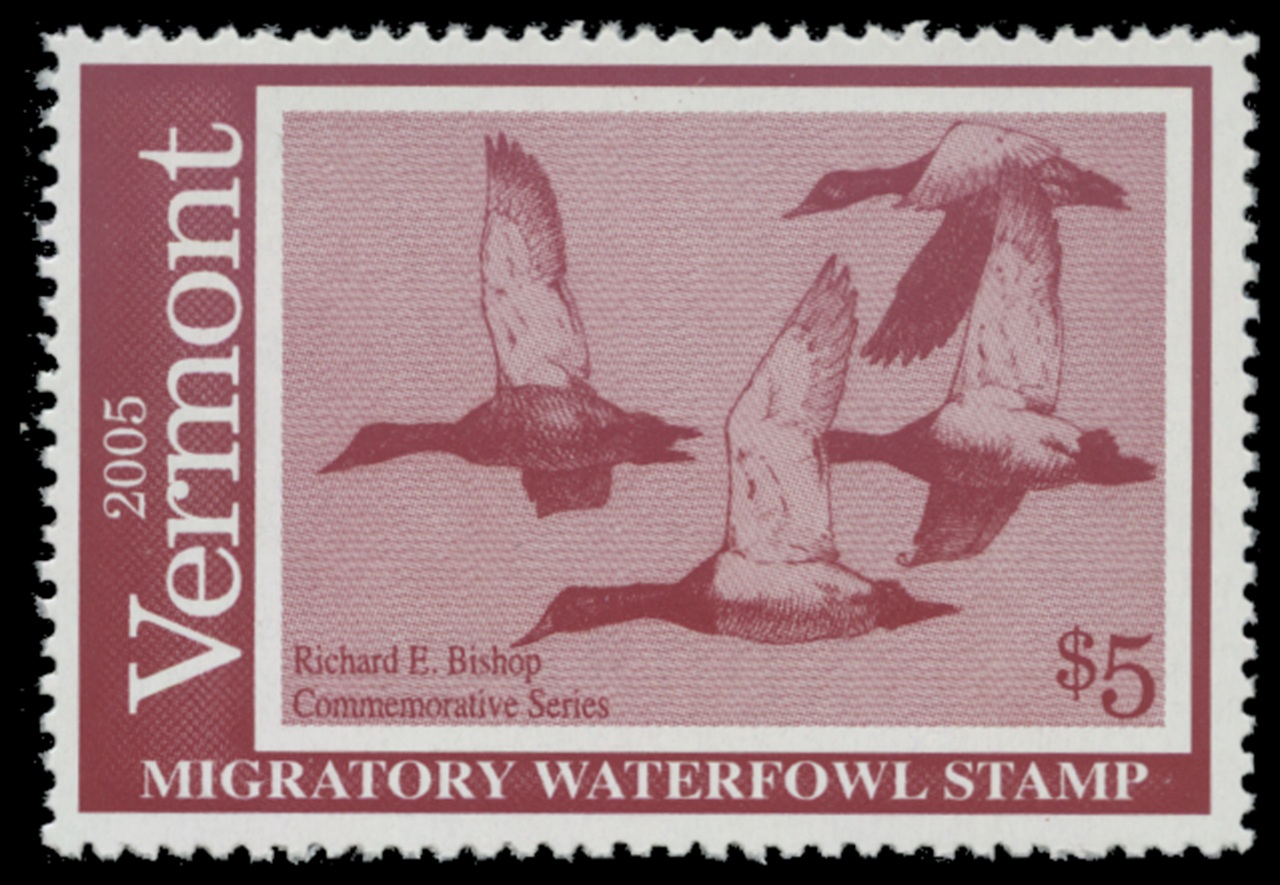 VT20 2005 State Duck Stamp. Mint Never Hinged. Very Fine. Canvasback by Richard Bishop.