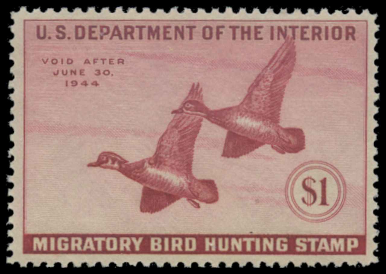 RW10 1943 Federal Duck Stamp. Mint Never Hinged. Fine - Very Fine. Wood Ducks by Walter Bohl.