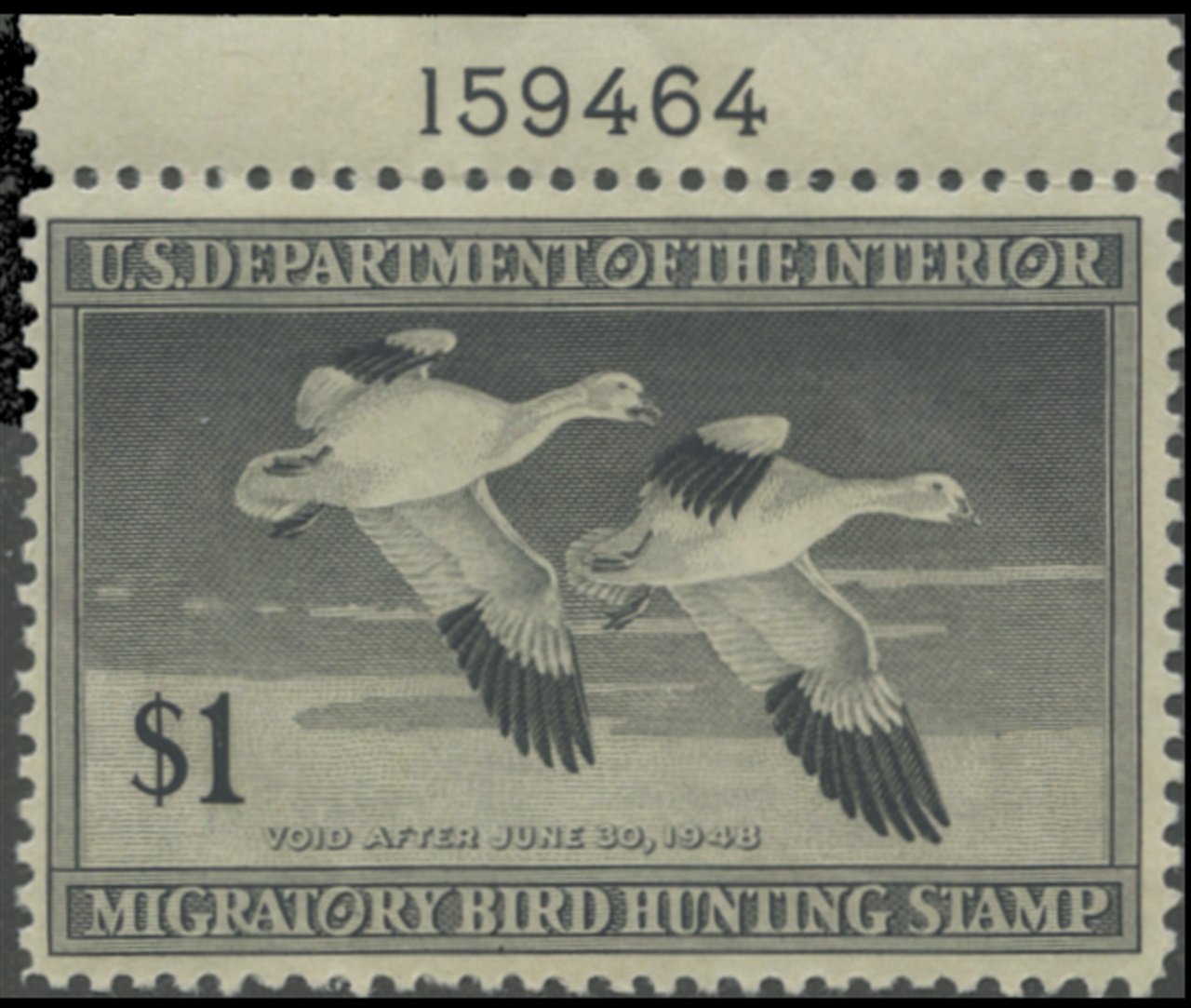 RW14 1947 Federal Duck Stamp. Mint Lightly Hinged. Fine - Very Fine. Snow Geese by Jack Murray.