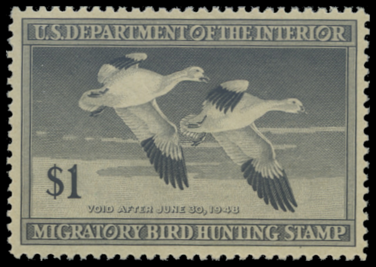 RW14 1947 Federal Duck Stamp. Mint Lightly Hinged. Fine - Very Fine. Snow Geese by Jack Murray.