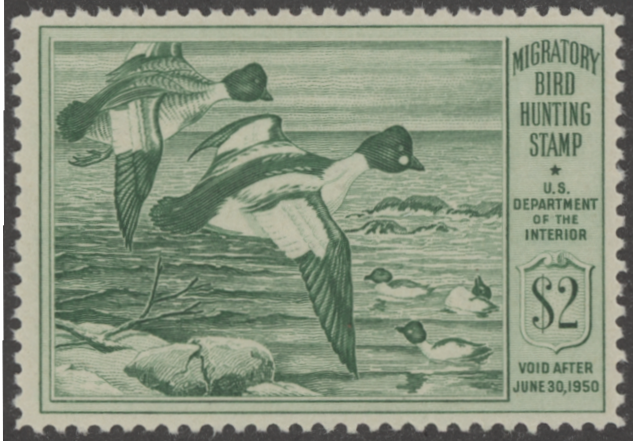 RW16 1949 Federal Duck Stamp. Mint Never Hinged. Fine - Very Fine. Goldeneyes by Roger E. Preuss.