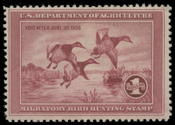 RW2 1935 Federal Duck Stamp. Mint Lightly Hinged. Fine - Very Fine. Canvasbacks Taking to Flight by Frank Benson.