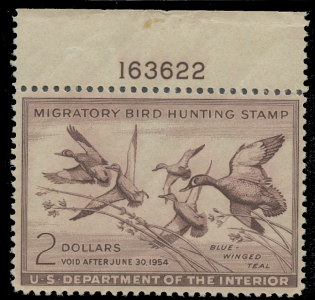 RW20 1953 Federal Duck Stamp. Mint Never Hinged. Fine - Very Fine. Blue-wing Teal by Clayton Seagears.