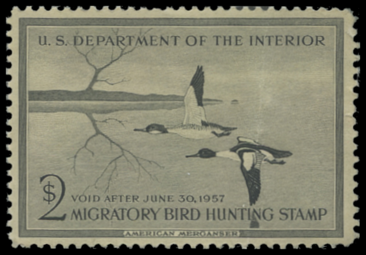 RW23 1956 Federal Duck Stamp. Mint Lightly Hinged. Fine - Very Fine. Mergansers by Edward Bierly.