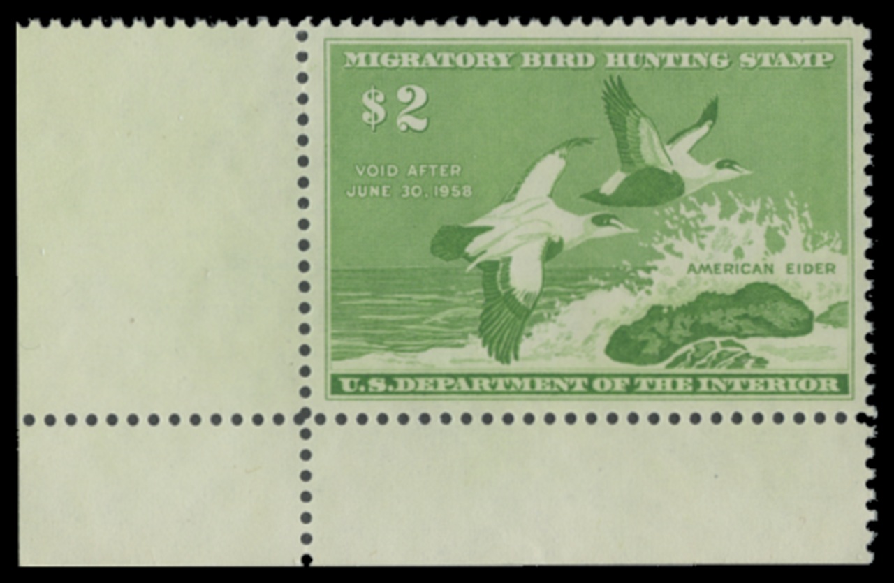 RW24 1957 Federal Duck Stamp. Mint Never Hinged. Fine - Very Fine. American Eiders by Jackson Miles Abbot.