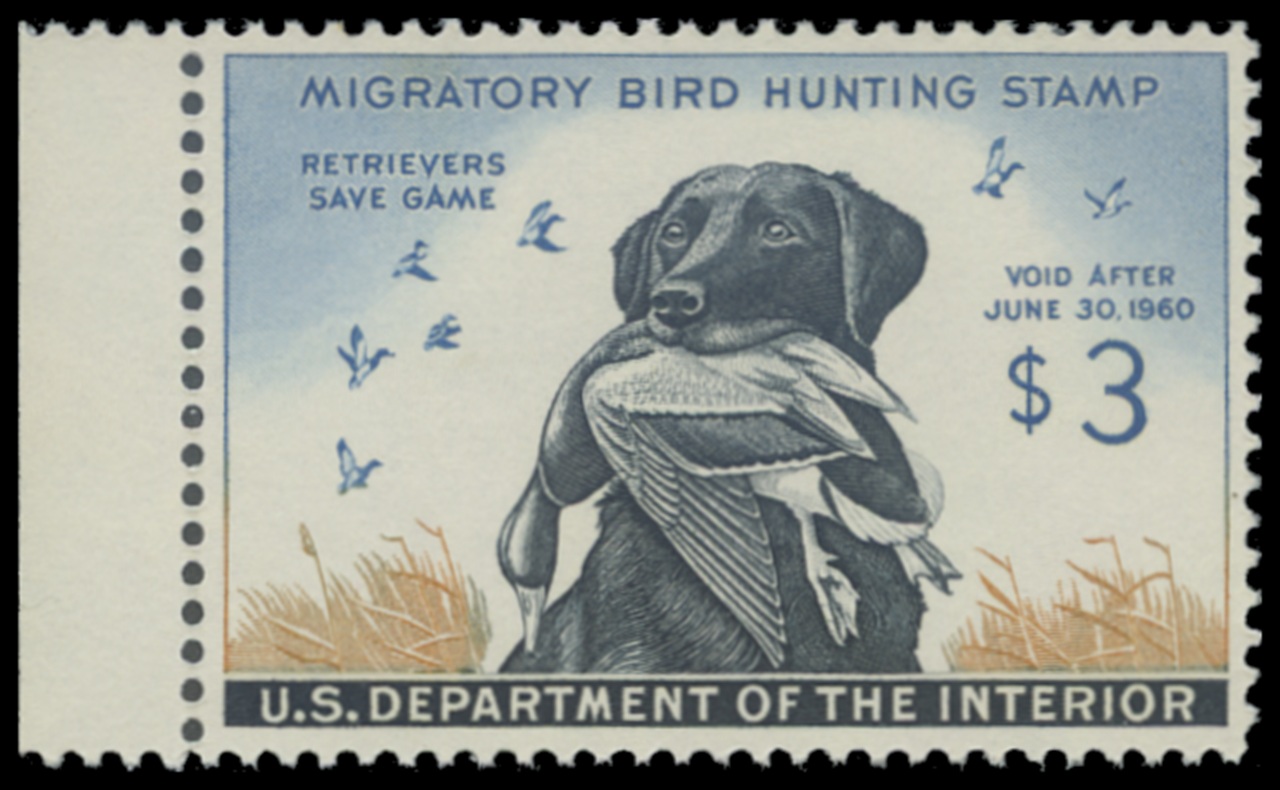 RW26 1959 Federal Duck Stamp. Mint Never Hinged. Fine - Very Fine. Black Lab with Drake Mallard by Maynard Reese.