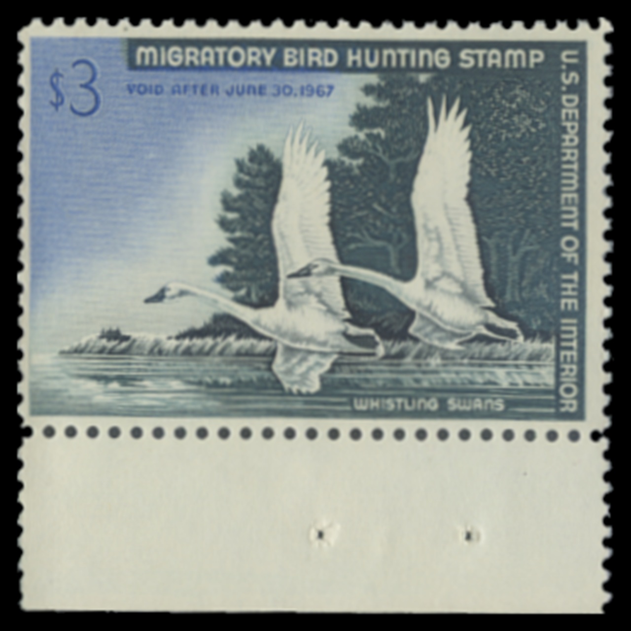 RW33 1966 Federal Duck Stamp. Mint Never Hinged. Fine - Very Fine. Whistling Swan by Stanley Sterns.