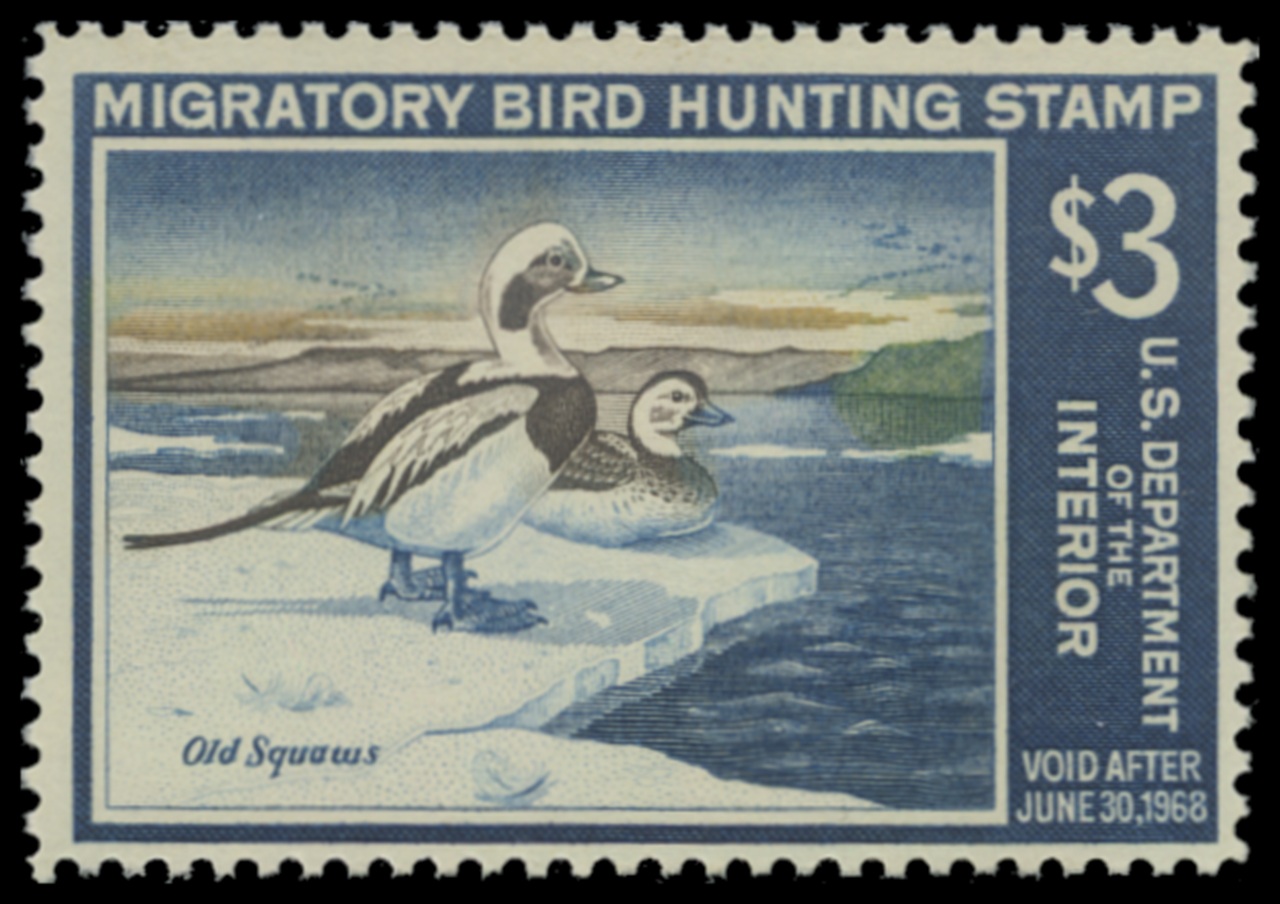 RW34 1967 Federal Duck Stamp. Mint Never Hinged. Fine - Very Fine. Old Squaws by Les Kouba.