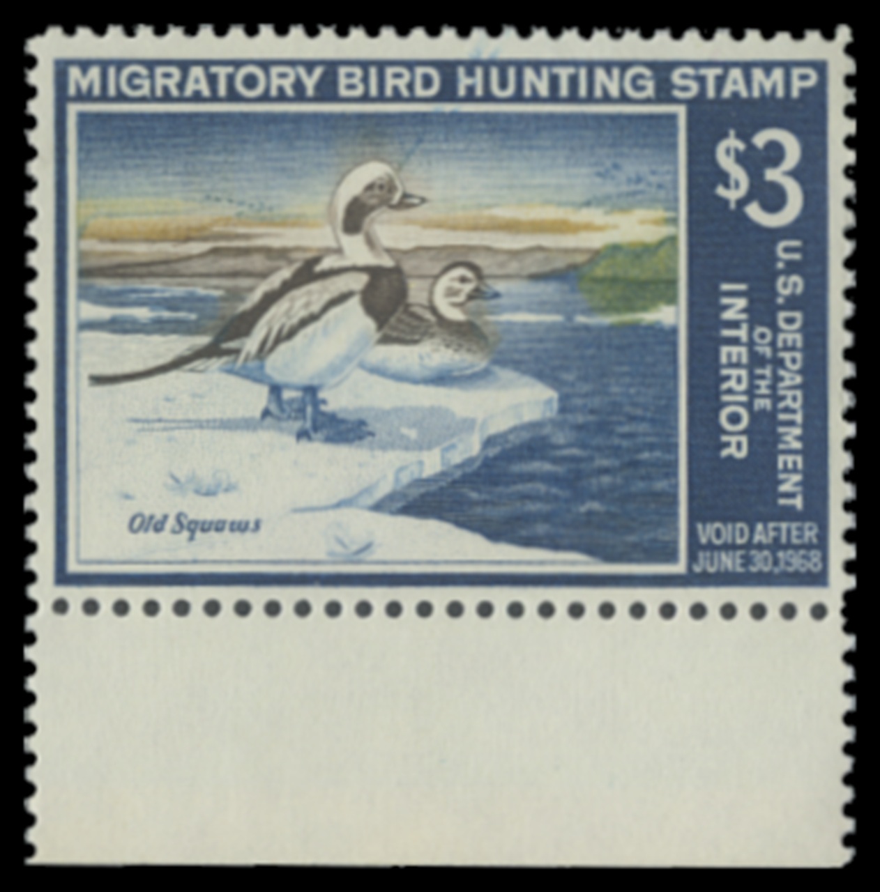 RW34 1967 Federal Duck Stamp. Mint Never Hinged. Fine - Very Fine. Old Squaws by Les Kouba.