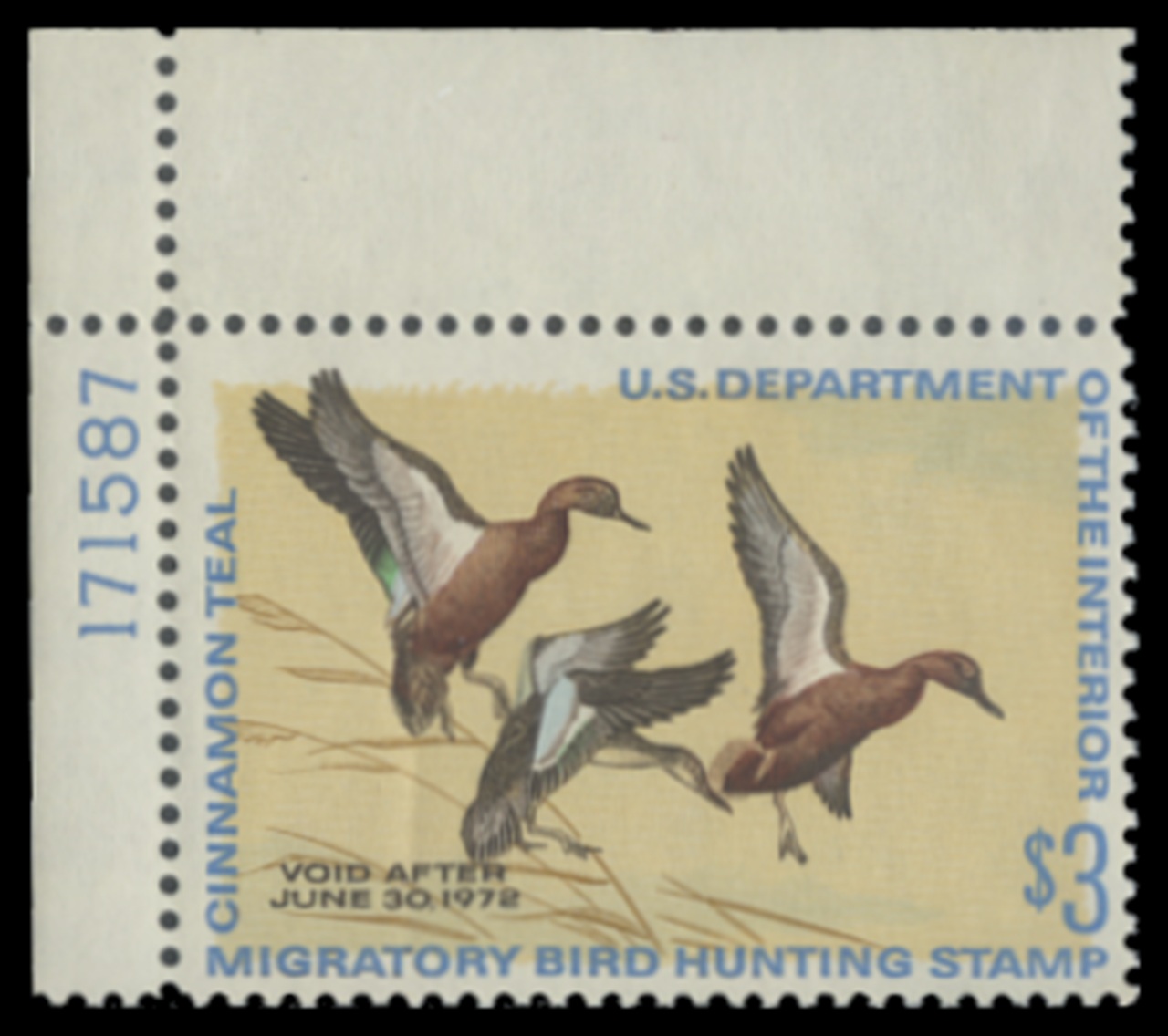 RW38 1971 Federal Duck Stamp. Mint Never Hinged. Fine - Very Fine. Cinnamon Teal by Maynard Reece.