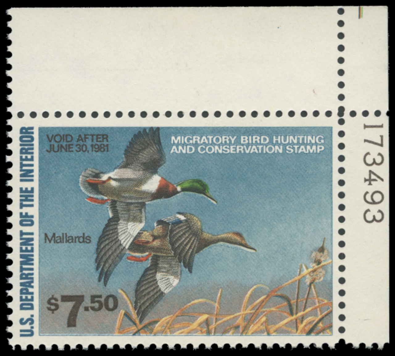RW47 1980 Federal Duck Stamp. Mint Never Hinged. Fine - Very Fine. Mallards by Richard Plasschaert.