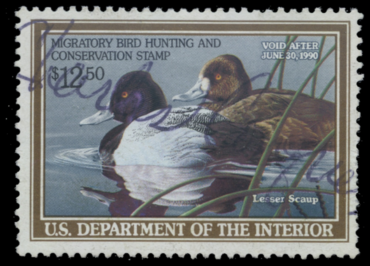 RW56 1989 Federal Duck Stamp. Used. Fine - Very Fine. Lesser Scaup by Neal Anderson.