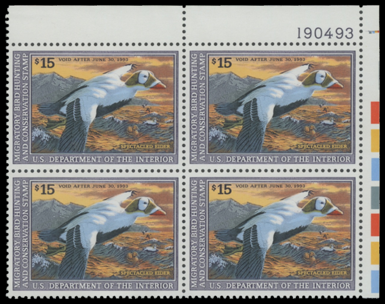 RW59 1992 Federal Duck Stamp. Mint Never Hinged. Fine - Very Fine. Speckled Eiders by Joe Hautman.