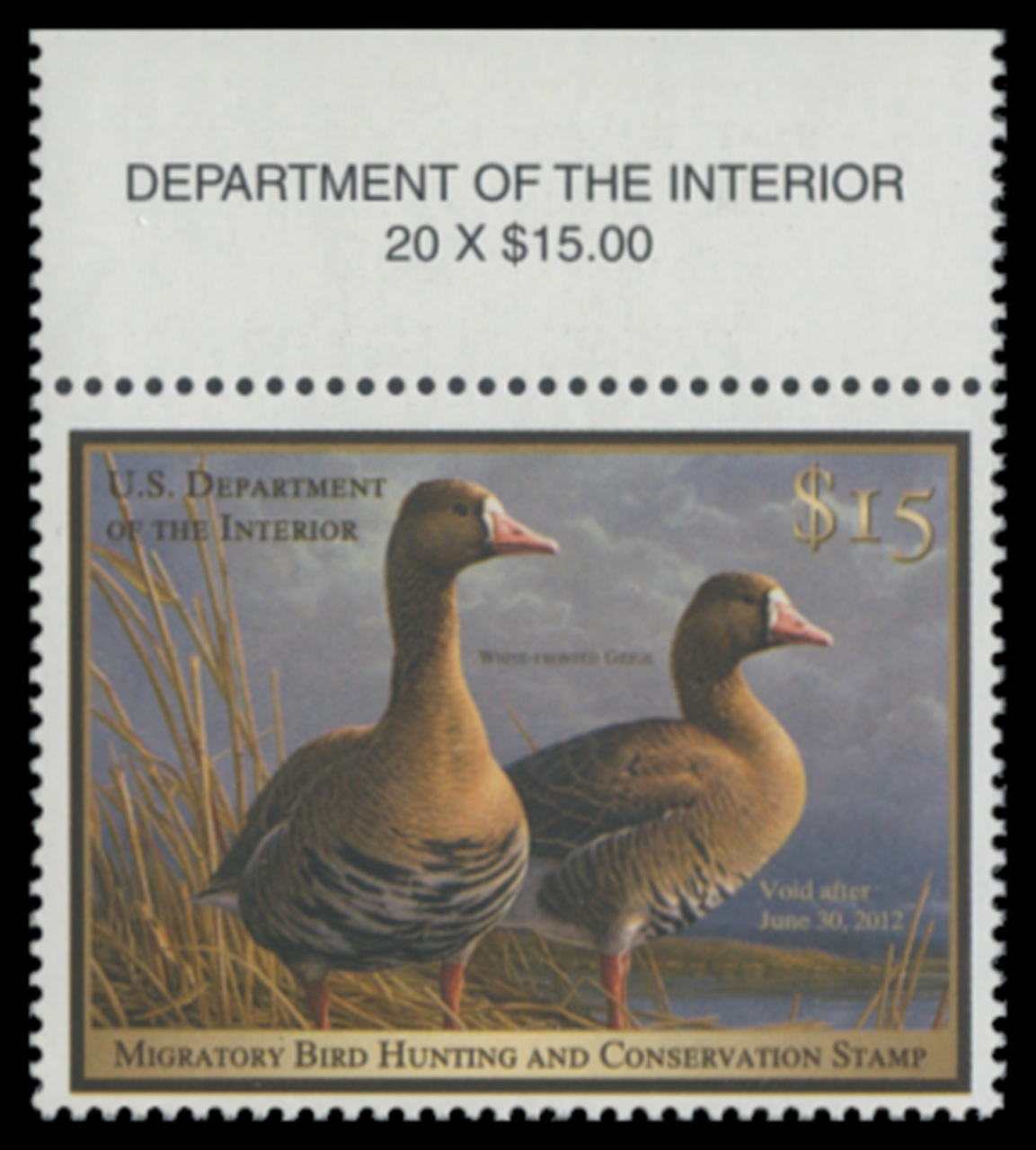 RW78 2011 Federal Duck Stamp. Mint Never Hinged. Fine - Very Fine. White-front Geese by Jim Hautman.